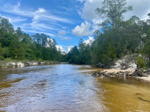 The Wandering Path in Milton, FL, is a serene escape, offering a unique blend of untouched natural beauty and comfortable accommodations. With 2000 feet of waterfront along the picturesque Coldwater Creek, this nature retreat is a world away from the hustle and bustle of city life, set within a sprawling 20-acre landscape.
