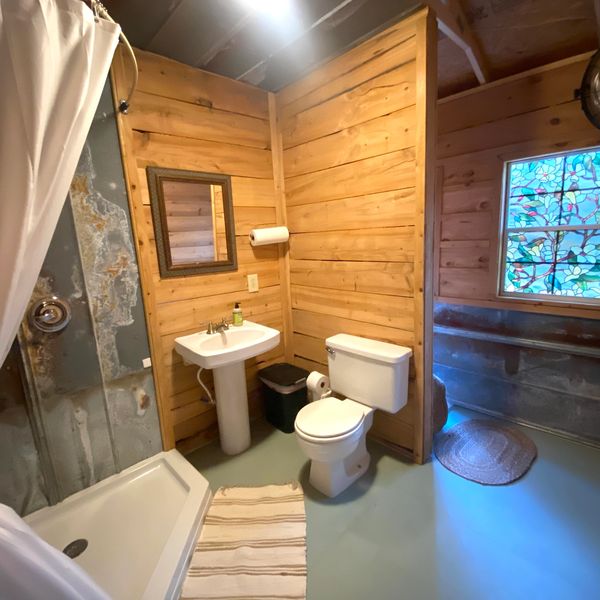 The property boasts 2000 feet of trails alongside the creek, perfect for hiking and exploring the natural surroundings. Kayak rentals are available for guests with appropriate vehicles, and fishing enthusiasts are welcome to cast their lines into the spring-fed creek.